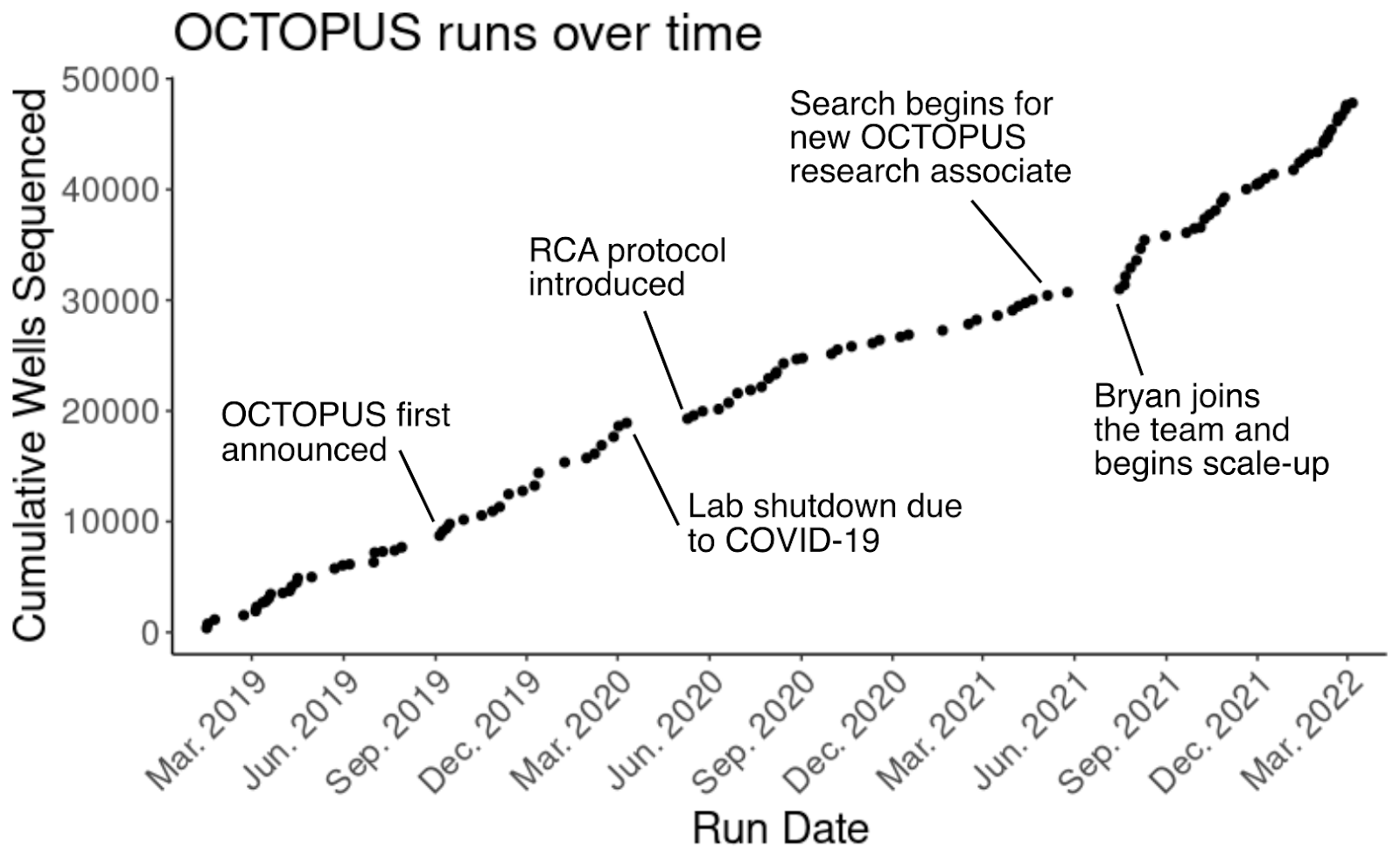 In the two years since the blog post was published, we’ve run this protocol over a hundred times and sequenced over 40,000 wells. By the time I joined Octant as an apprentice in August of 2020, sequencing plasmids on OCTOPUS was an Octant rite of passage. Everyone across the company – from our more technology-development-focused teams to our drug development biology teams–rely on this technology.